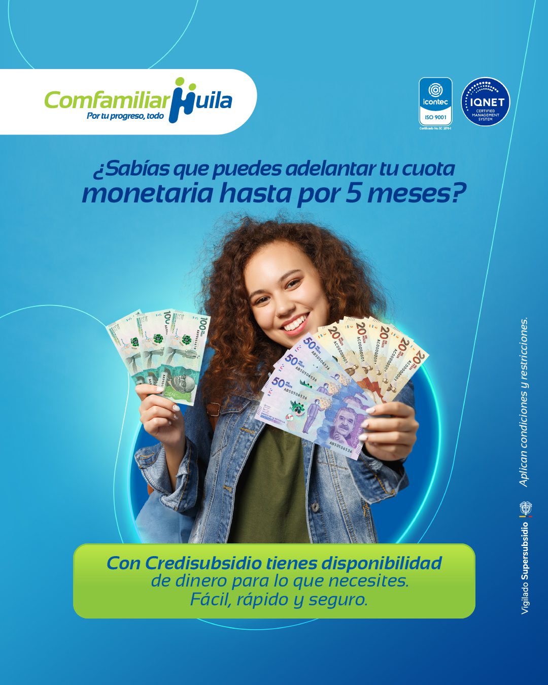 Accede al Credisubsidio a través de Comfamiliar Huila, esta línea de crédito tiene como objetivo proporcionar una disponibilidad rápida de dinero para cubrir gastos inmediatos, permitiendo adelantar la cuota monetaria hasta 5 meses.