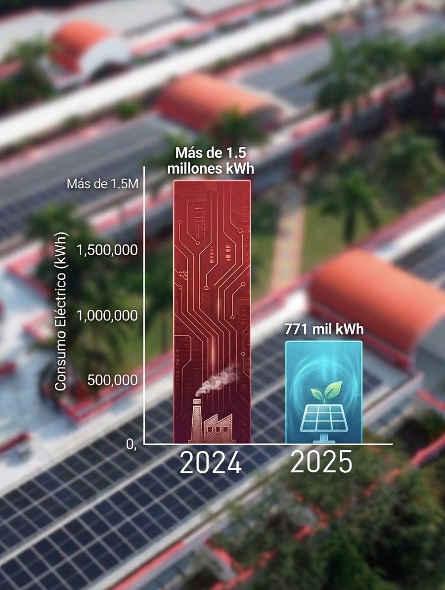 El gasto en energía pasó de 970 millones de pesos en 2024 a 349 millones en 2025, lo que representa un ahorro cercano a 620 millones de pesos en el primer año.