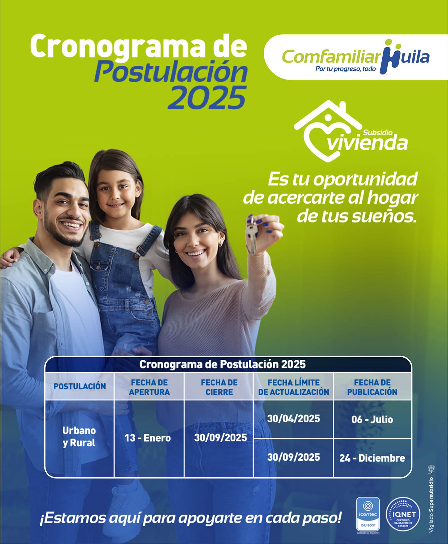 Las postulaciones estarán abiertas desde el 13 de enero hasta el 17 de octubre. Este es el momento perfecto para dar el primer paso hacia un futuro lleno de estabilidad y seguridad para tu hogar.