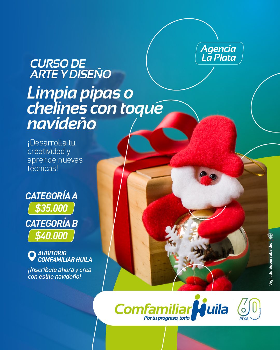 Comfamiliar Huila continúa generando espacios de formación en el territorio con el Curso de Arte y Diseño: limpia pipas o chelines con toque navideño, una experiencia pensada para quienes disfrutan el trabajo manual y la creación artística en La Plata, Huila.