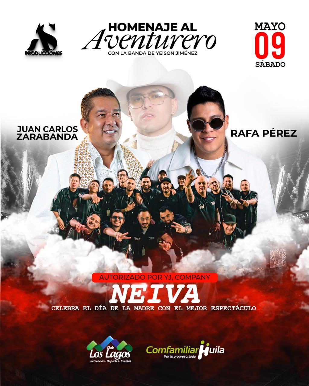 Comfamiliar Huila invita a disfrutar de una noche especial con el evento “Homenaje al Aventurero”, un espectáculo musical que llegará a Neiva el próximo sábado 9 de mayo en el Club Los Lagos, ideal para celebrar el Día de la Madre con música, emoción y grandes artistas.