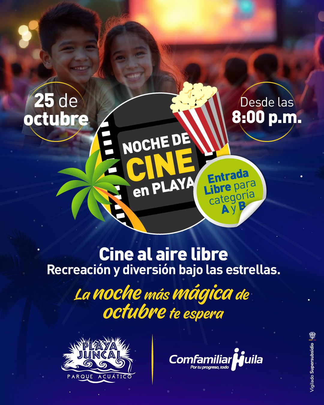 Este sábado 25 de octubre de 2025, el Parque Acuático Playa Juncal se convertirá en el escenario perfecto para vivir la noche más mágica de octubre, con el evento “Noche de Cine en Playa”.