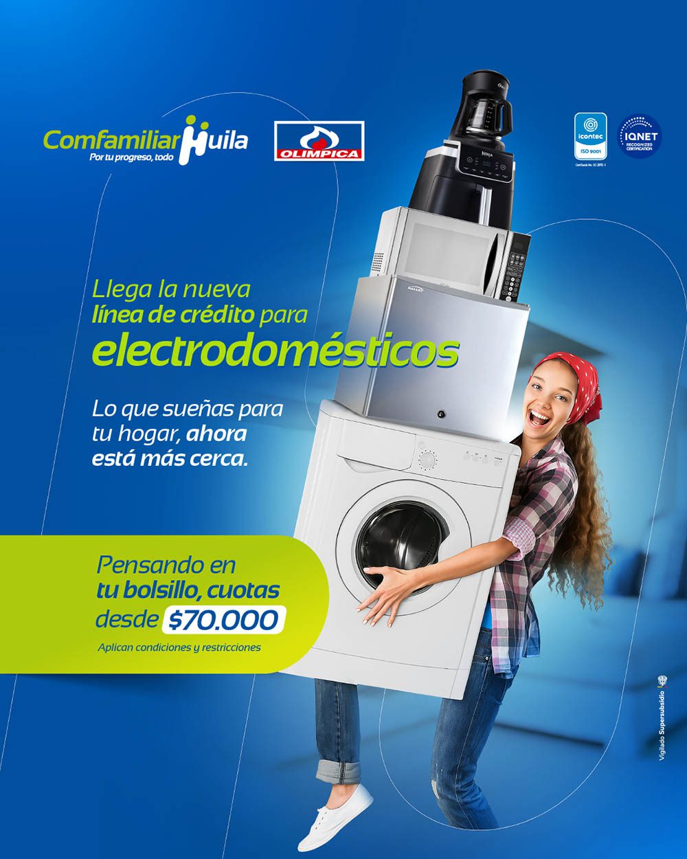 Pensando en el bienestar y progreso de nuestros afiliados, Comfamiliar Huila lanza su nueva línea de crédito para electrodomésticos, una oportunidad para equipar el hogar con productos de calidad, con cuotas cómodas y facilidades de pago.
