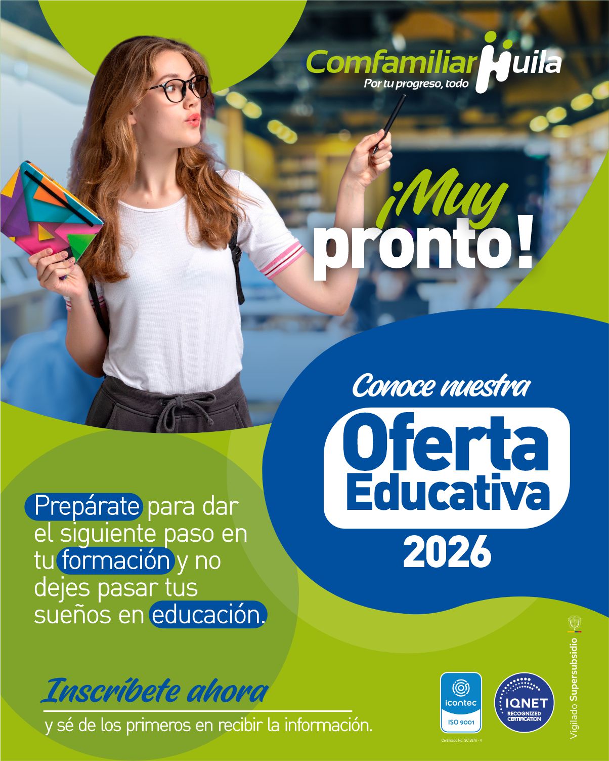 El inicio de un nuevo año siempre trae consigo nuevos retos, propósitos y sueños por cumplir. Pensando en quienes desean crecer personal y profesionalmente, Comfamiliar Huila presenta su Oferta Educativa 2026, una oportunidad para dar el siguiente paso en la formación y construir un mejor futuro a través del aprendizaje.