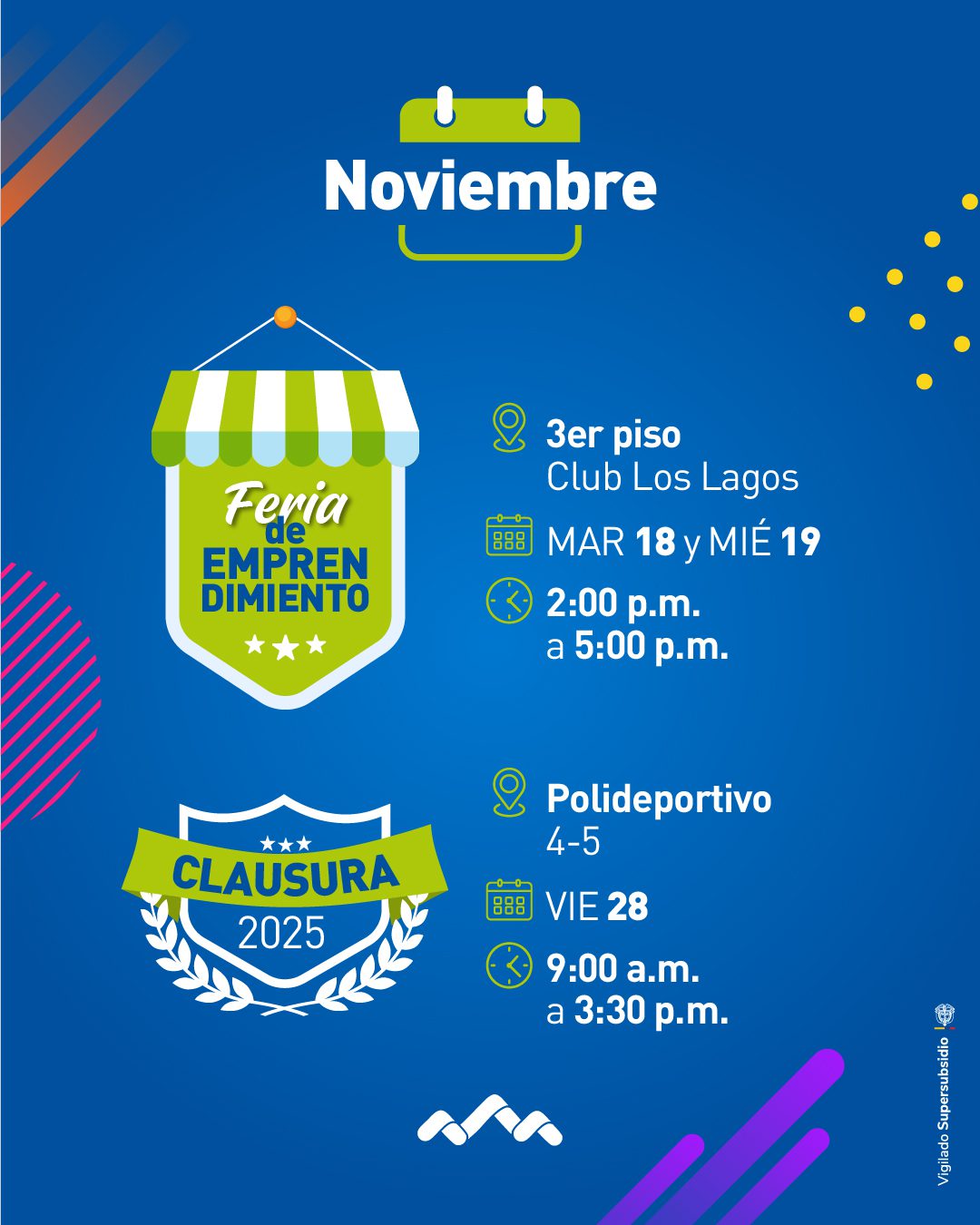 Durante los meses de noviembre y diciembre de 2025, se llevarán a cabo diversas actividades diseñadas para promover el aprendizaje, la actividad física, la integración y el emprendimiento.