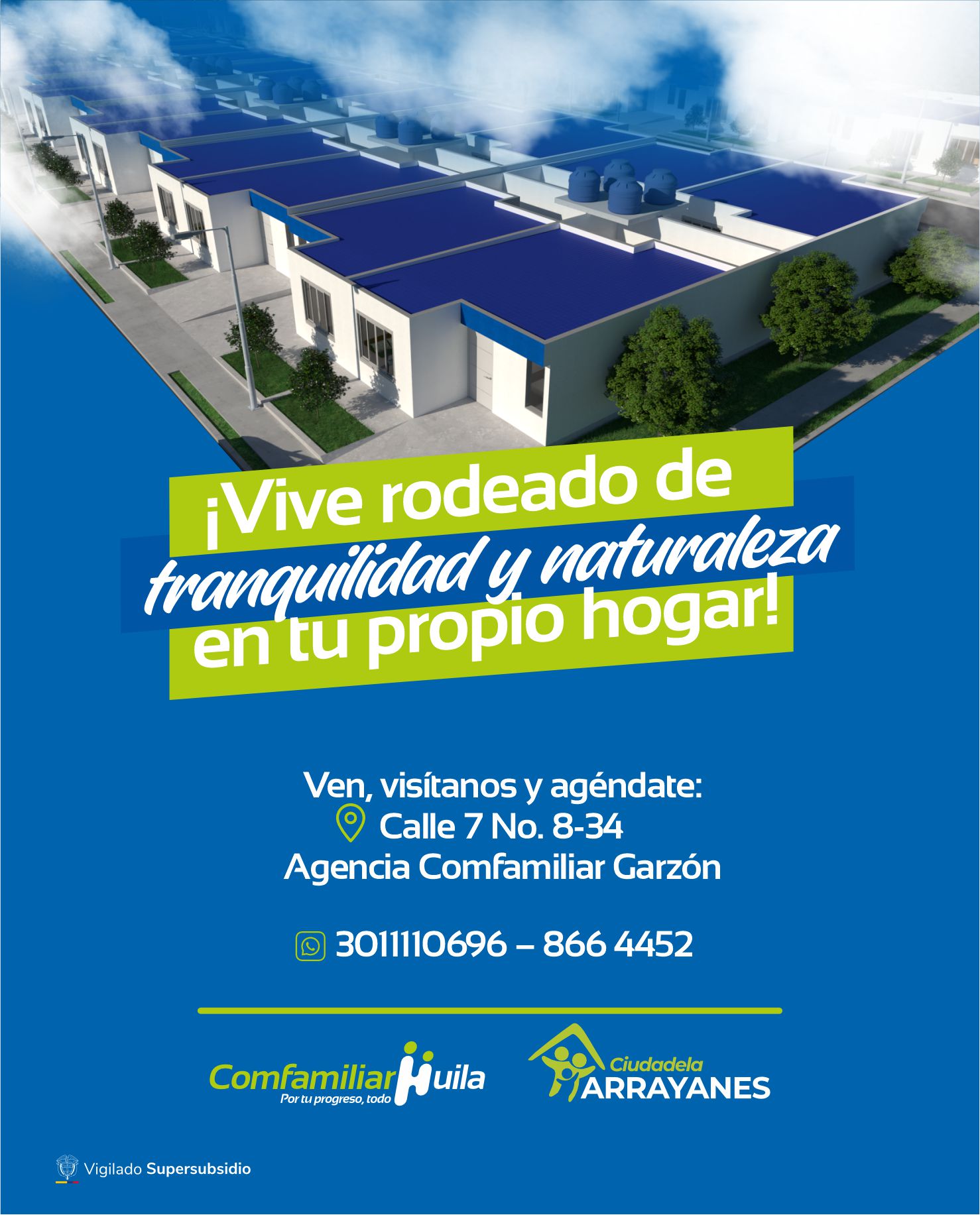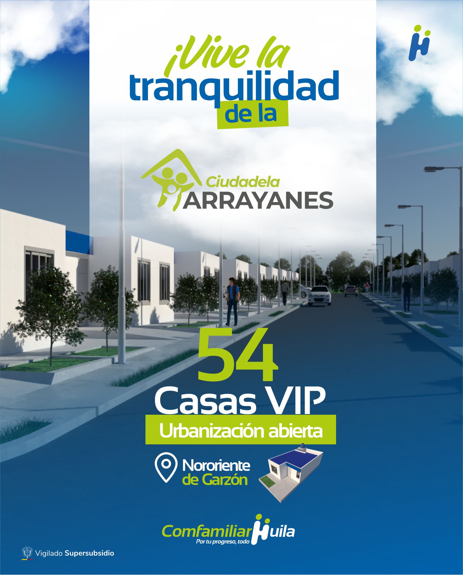 Ciudadela Arrayanes es un proyecto de vivienda VIP ubicado en el nororiente de Garzón, con urbanización abierta y 54 casas diseñadas para brindar tranquilidad, naturaleza y un ambiente familiar.