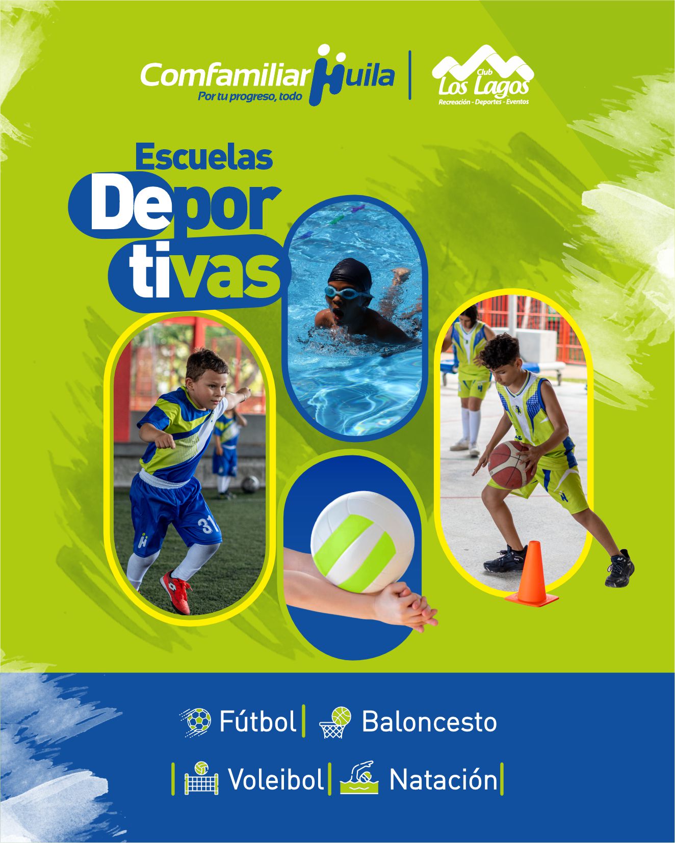 El Club Deportivo Comfamiliar Huila ofrece sus Escuelas Deportivas, un programa de formación integral que promueve el desarrollo físico, emocional y social de niños, niñas y jóvenes a través del deporte, fortaleciendo valores como el respeto, la responsabilidad, el trabajo en equipo y la sana convivencia.