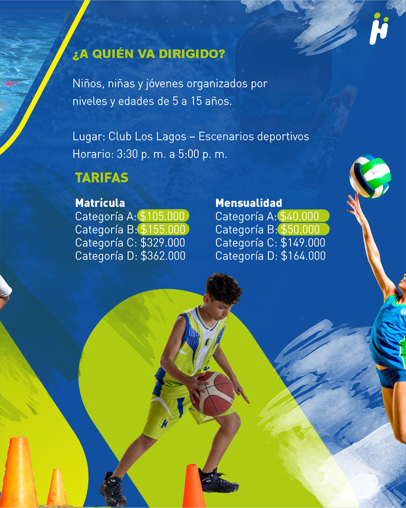 Dirigido a niños, jóvenes y adultos interesados en vivir una experiencia enriquecedora en el agua, con escenarios ideales como el Centro Recreacional Los Lagos y el Gimnasio Los Cámbulos.