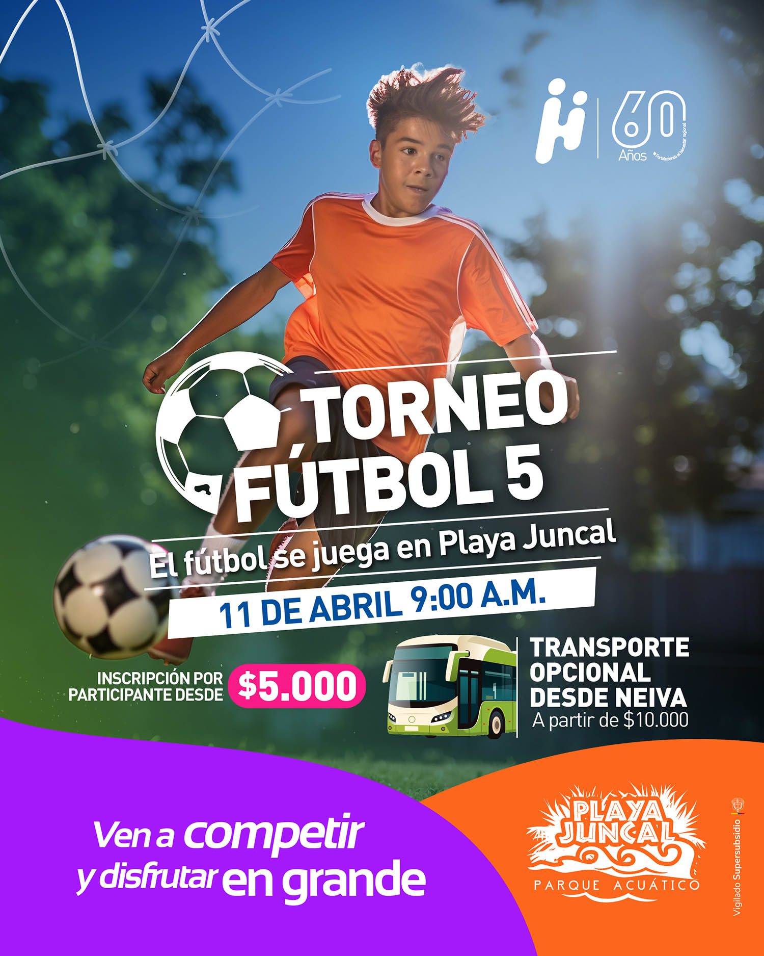 Comfamiliar Huila invita a todos los amantes del fútbol a participar en el Torneo Fútbol 5 Playa Juncal, una jornada deportiva pensada para compartir, competir y disfrutar en un ambiente lleno de energía y recreación.