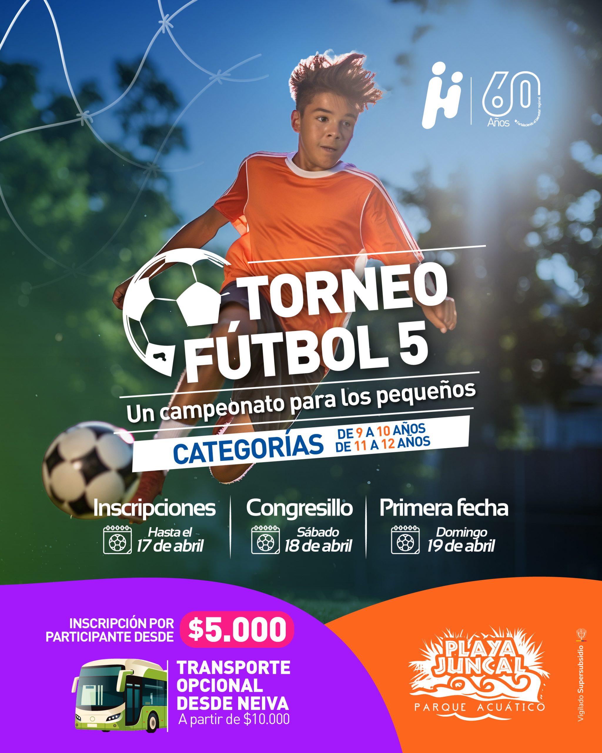 Comfamiliar Huila invita a todos los amantes del fútbol a participar en el Torneo Fútbol 5 Playa Juncal, un campeonato diseñado especialmente para los más pequeños, donde podrán compartir, competir y disfrutar en un ambiente lleno de energía, recreación y diversión.